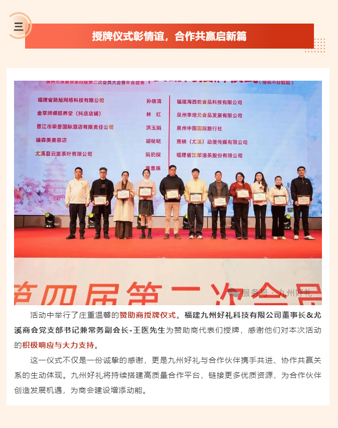 携手共赢,链接未来!九州好礼携手合作伙伴助力泉州尤溪商会年会盛典